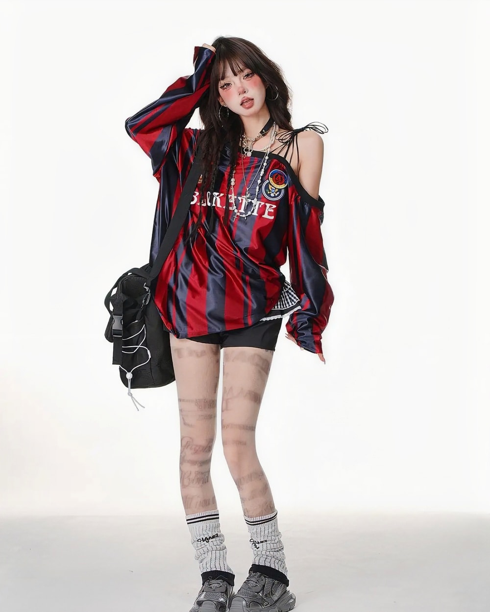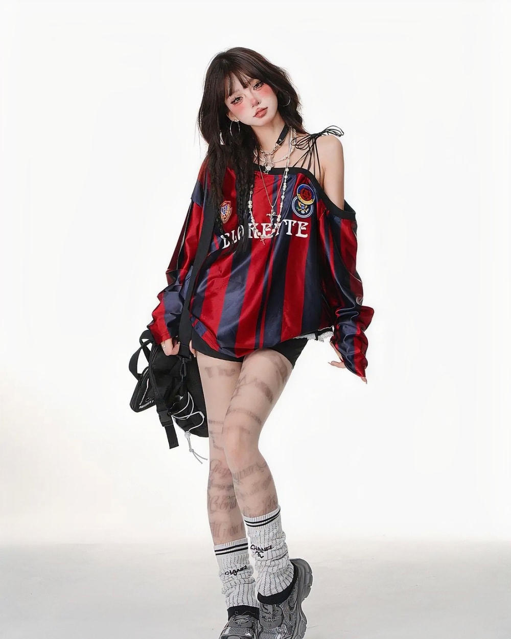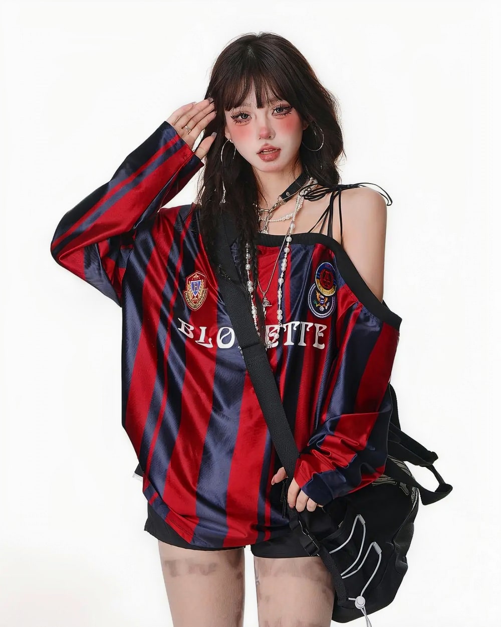 Off Shoulder Sport Sweatshirt – Coquette Aesthetic (´。- ᵕ – 。`) ♡