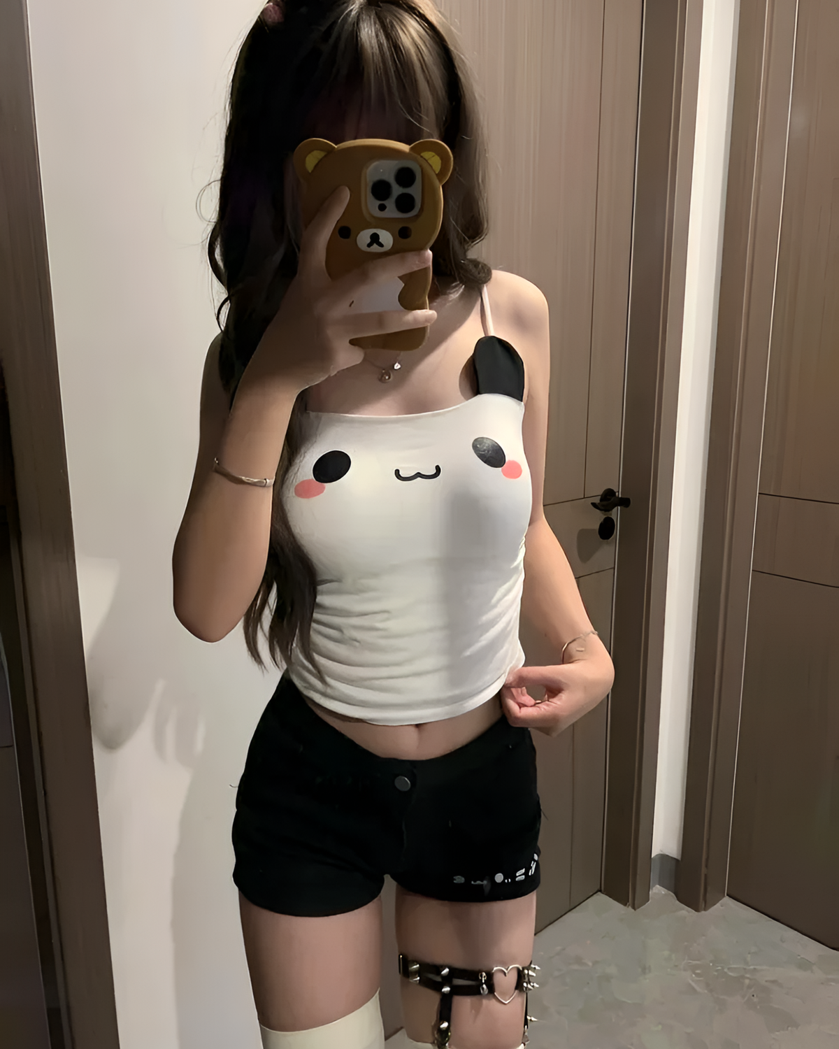 - ✿ Pair with black denim shorts and a heart-buckle garter for a trendy jiraikei or dark-kawaii look.