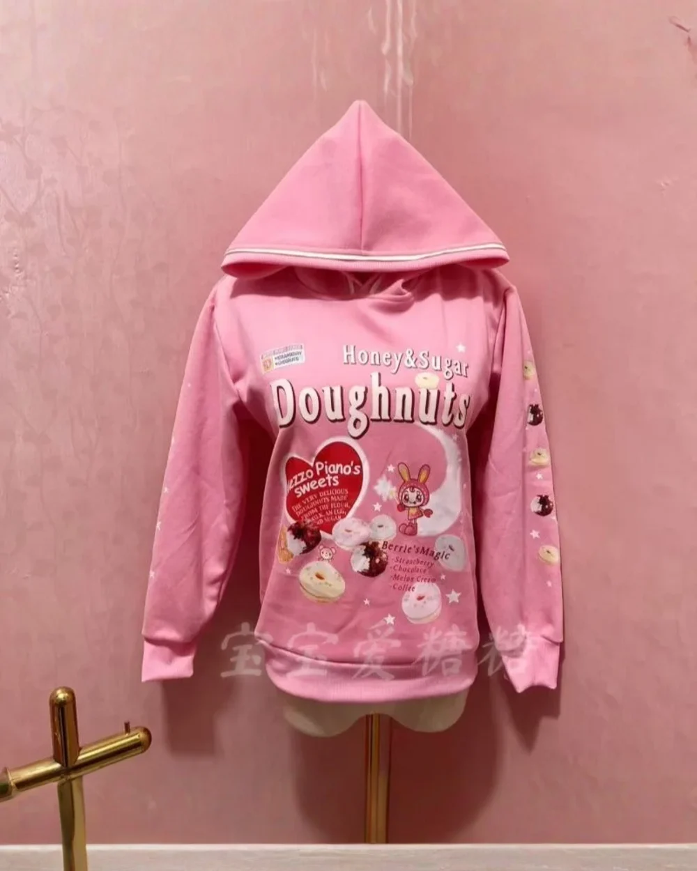 Brighten up your wardrobe with this sweet, nostalgic hoodie featuring a colorful vintage-inspired doughnut shop graphic. Made from a durable polyester blend with a slight stretch, this piece captures the playful essence of Japanese pop culture in a cozy, everyday fit.