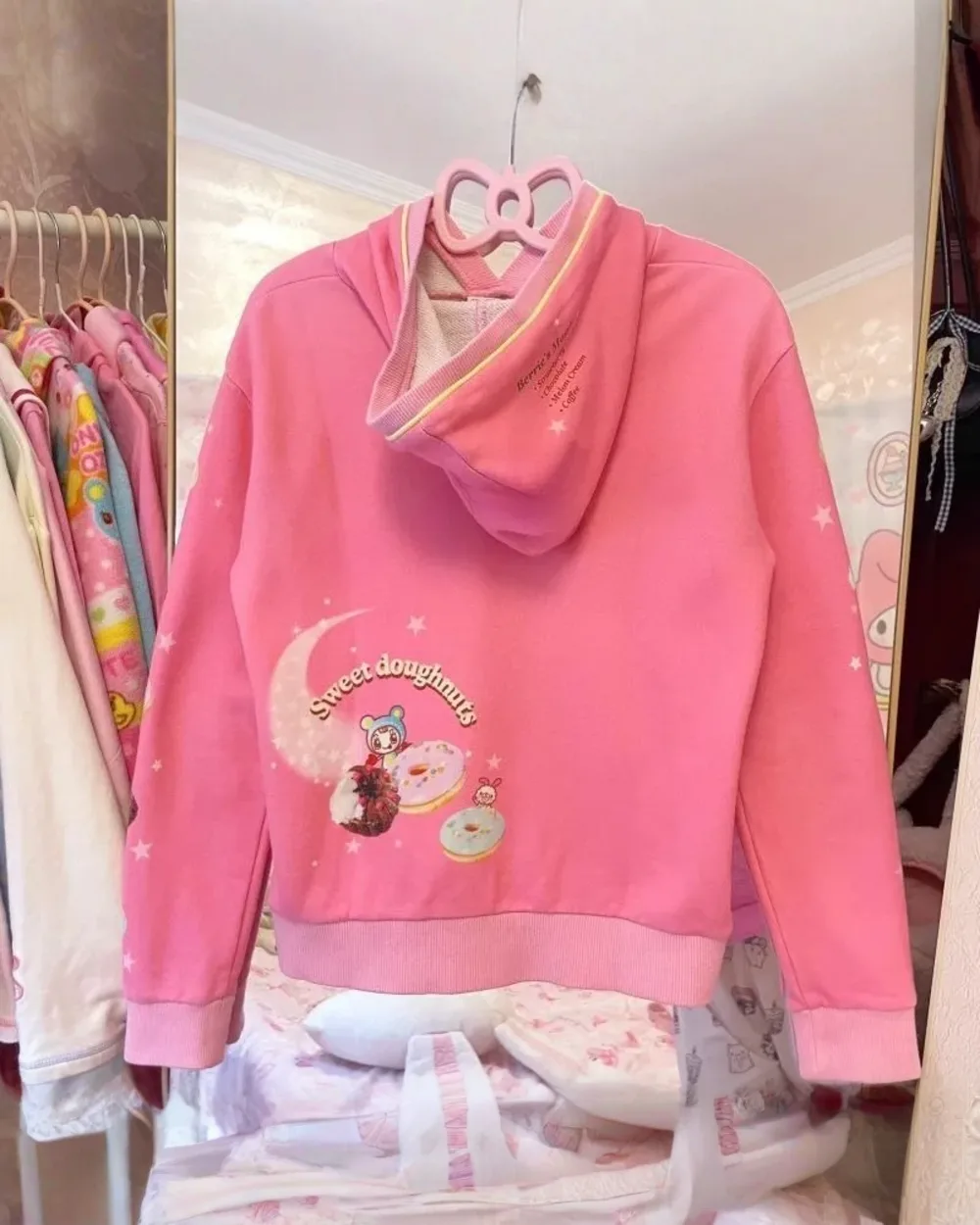 - ✿ Vibrant print featuring cute characters, doughnuts, and starry details across the chest and sleeves.