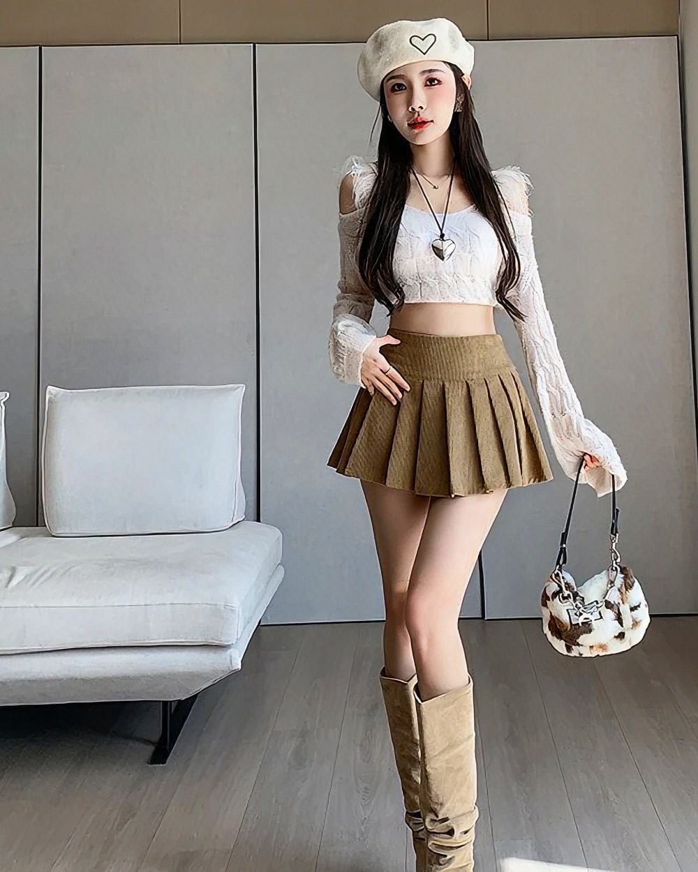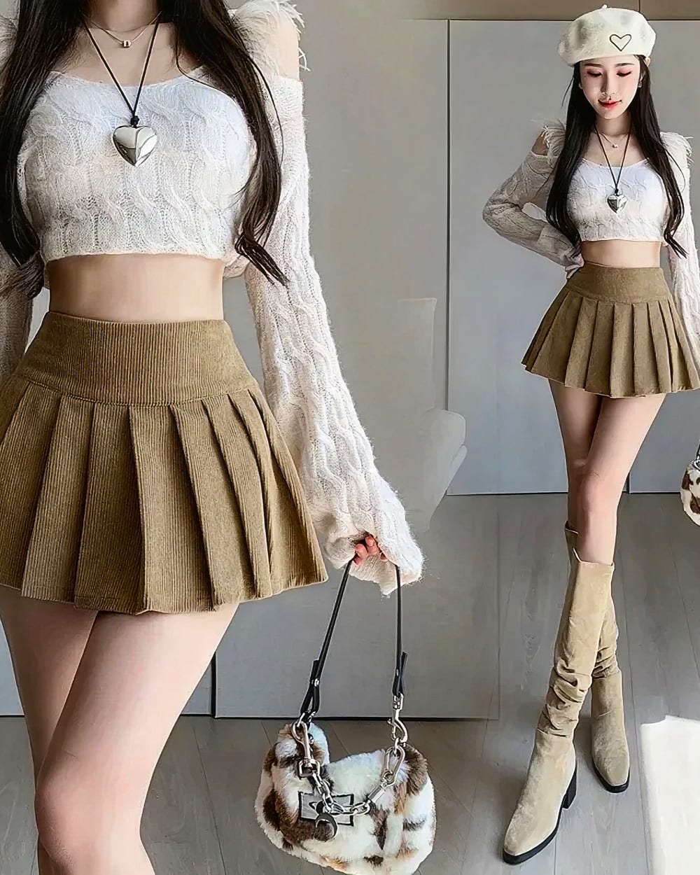 Pleated Corduroy Skirt – Preppy Aesthetic (´。- ᵕ – 。`) ♡