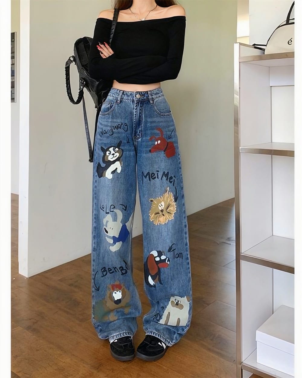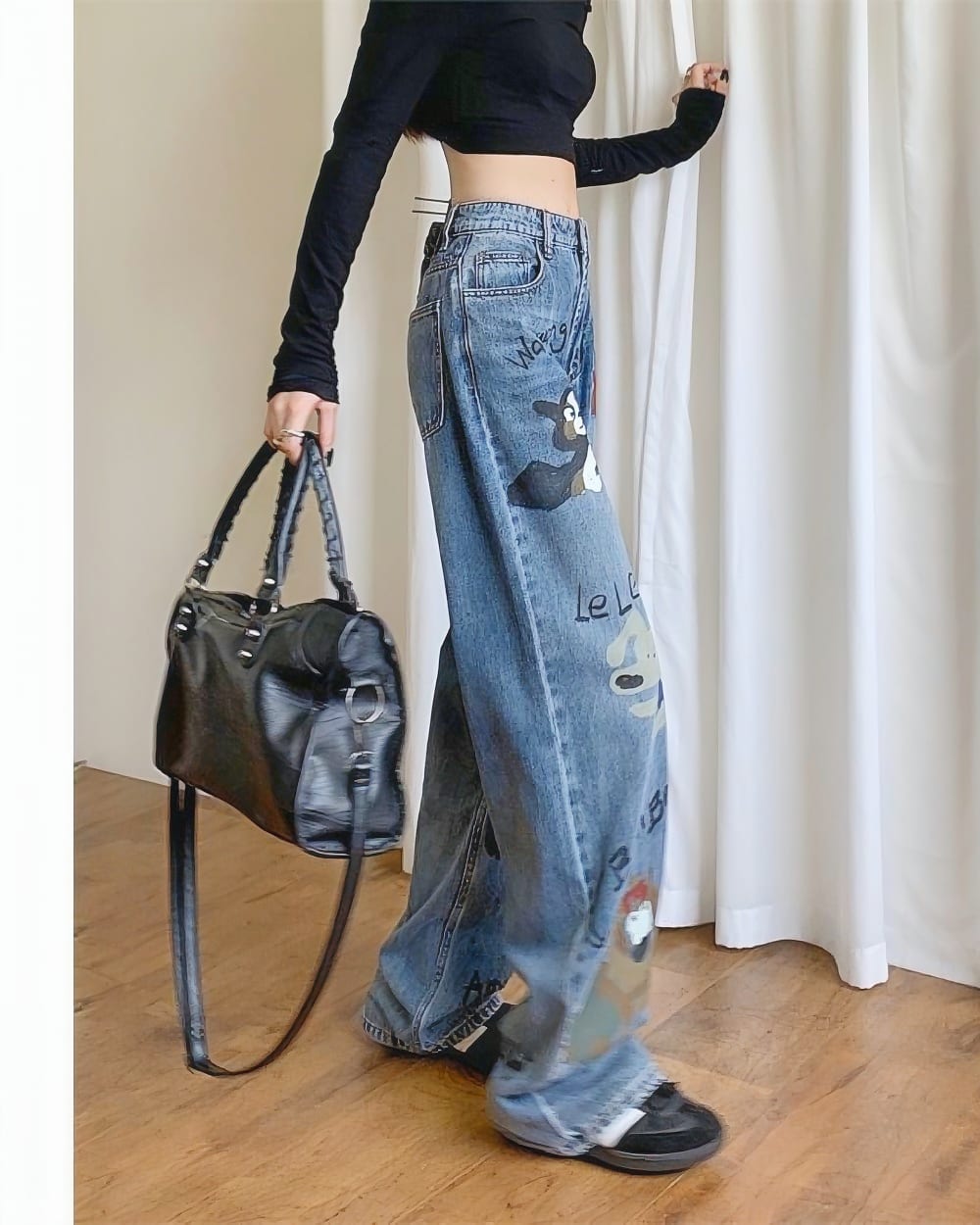 Express yourself with the Retro Style Cute Graffiti Jeans and let your outfit do the talking~ (*≧ω≦)ノ🖌️💖