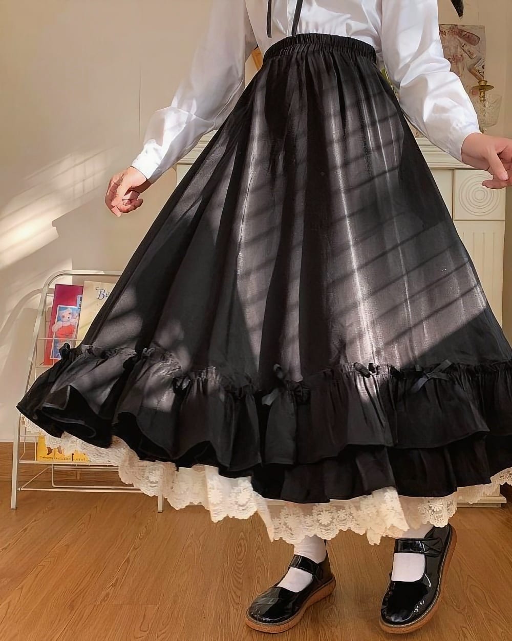 Turn heads and twirl with delight in the Ruffled High Waist Long Skirt! Overflowing with charm and elegance, this skirt is the perfect blend of kawaii sweetness and dreamy sophistication. Whether you’re strolling through the park, sipping bubble tea, or snapping OOTD selfies, this skirt adds a magical touch to your look! 💕🍓