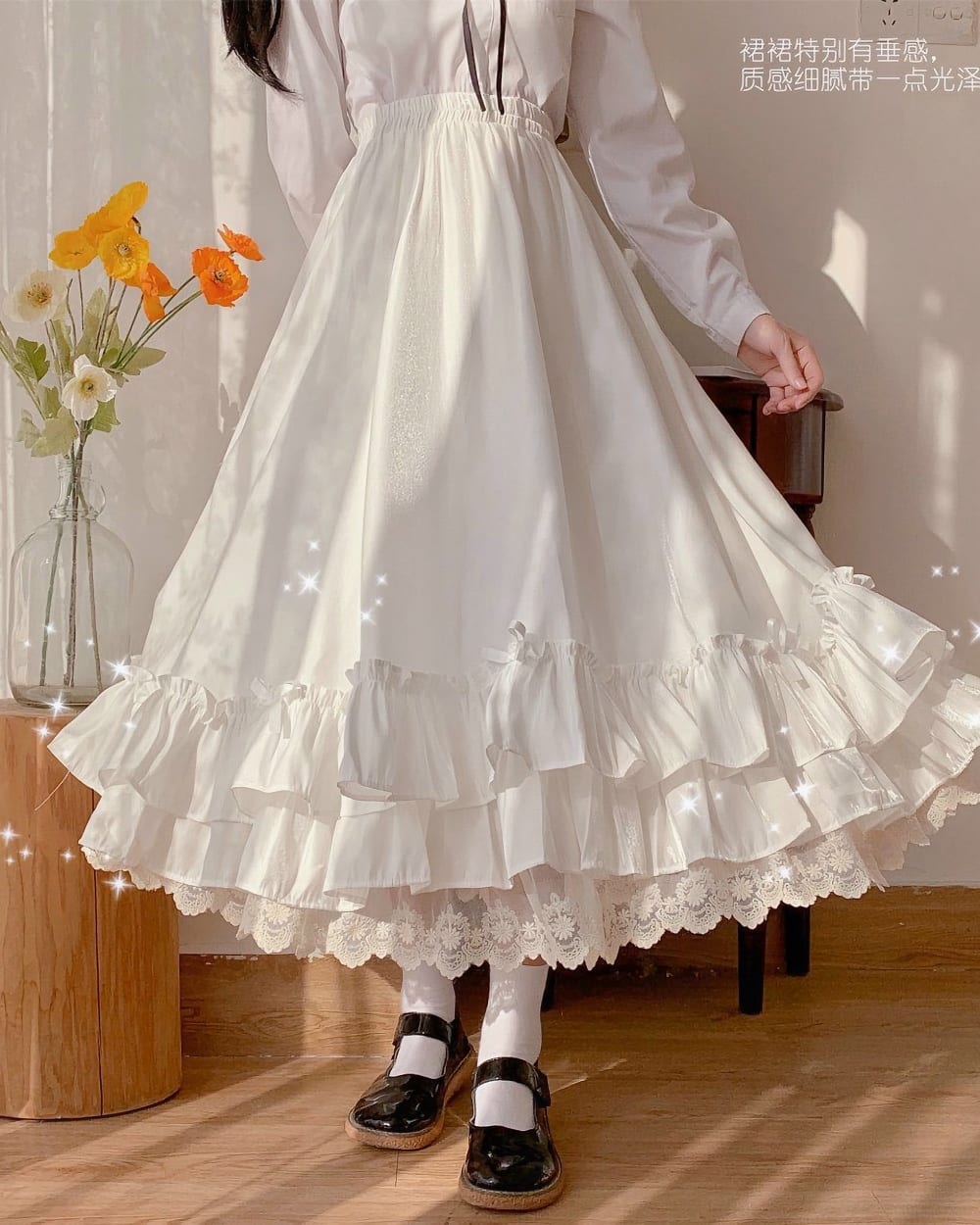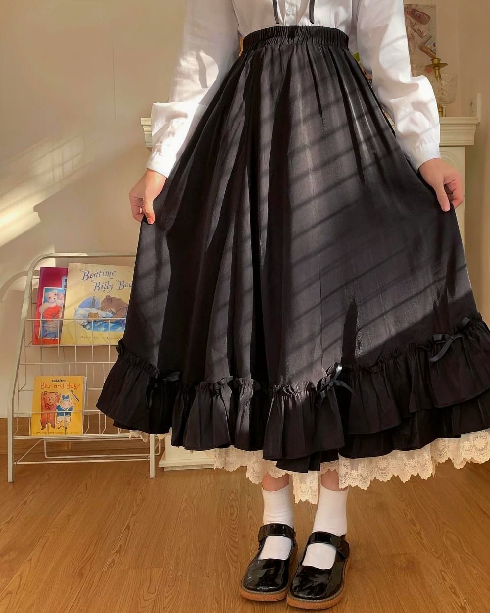 Add the Ruffled High Waist Long Skirt to your wardrobe and transform every moment into a picture-perfect fairytale. 💖🌙 Perfect for kawaii fashionistas who love looking chic and adorable at the same time! 🌼✨