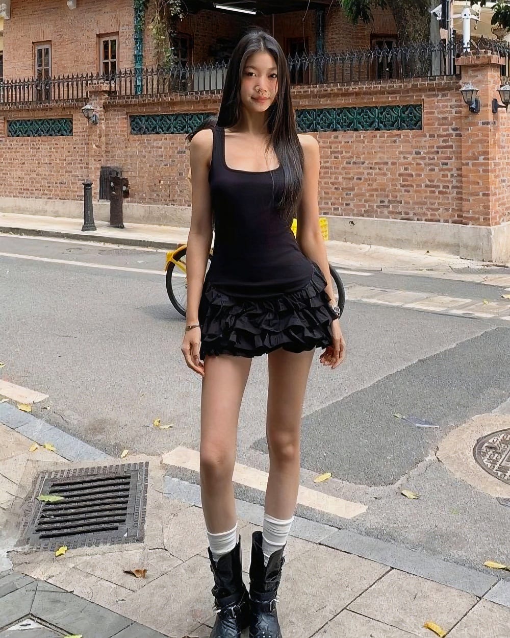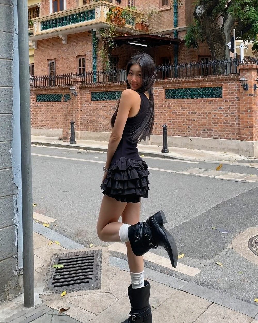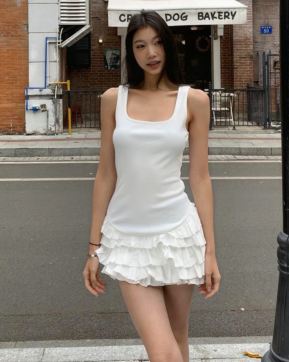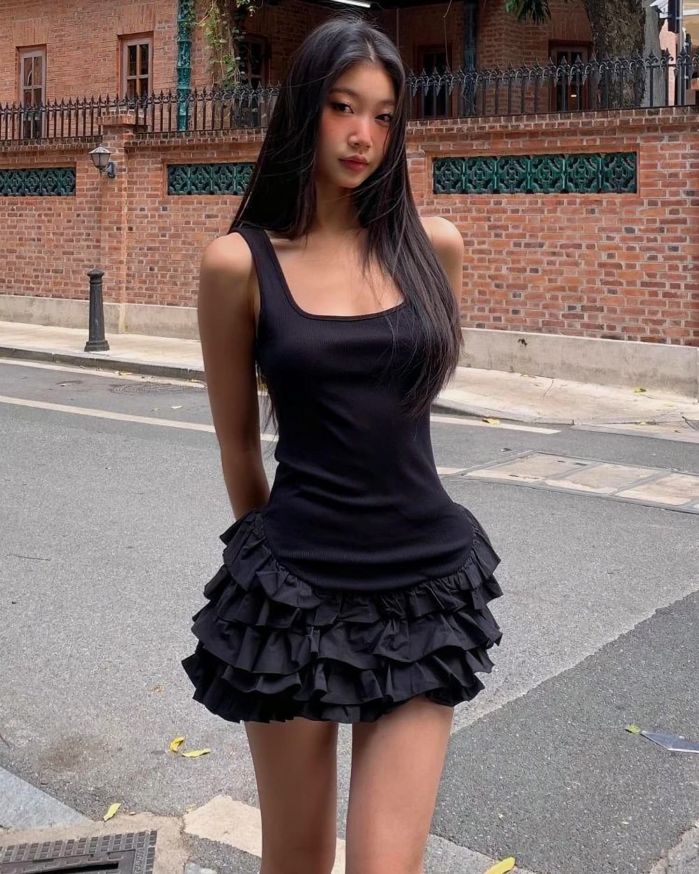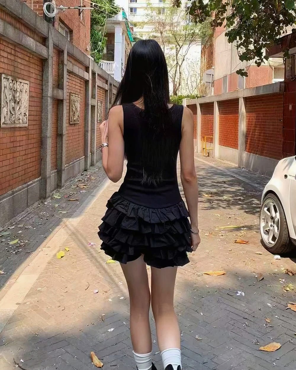 Channel pure feminine elegance with this absolutely stunning black ribbed mini dress that perfectly captures coquette sophistication! Featuring a flattering sleeveless tank bodice that hugs in all the right places and the most enchanting cascading ruffle tiers at the hem, this piece delivers that coveted balance of sweet innocence and sultry charm. The premium ribbed knit construction ensures comfortable stretch while the dramatic ruffle details add that perfect touch of romantic movement every coquette lover adores.