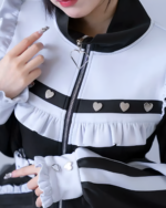 These custom heart-shaped zipper pulls add just enough irony to your fit. You can store your tiny regrets in the functional pockets while looking dangerously cute. ૮꒰ ˶• ༝ •˶꒱ა