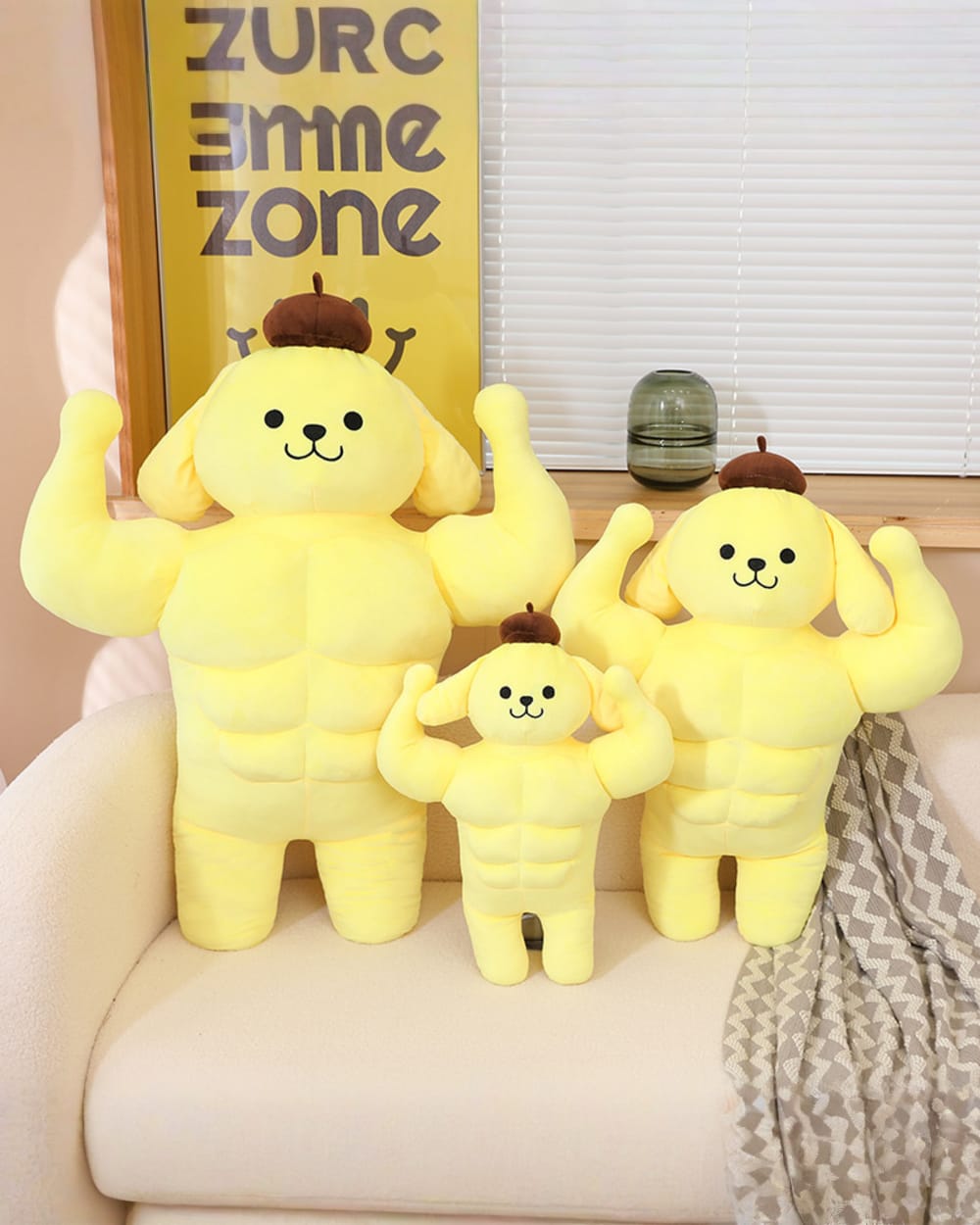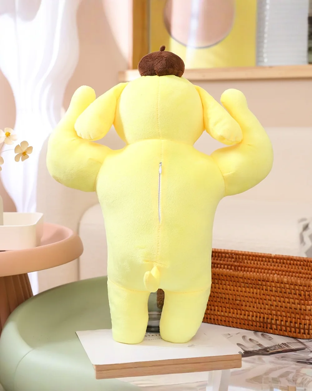 Kuromi, known for her mischievous charm, now flexes bulging biceps and rock-hard abs. Cinamoroll, the fluffy and friendly pup, takes on a new persona with a ripped physique that defies his usual adorableness. My Melody, typically sweet and demure, strikes a pose that’s as strong as it is silly. And let’s not forget Pompompurin, whose newfound muscles will make you laugh. (o^▽^o)