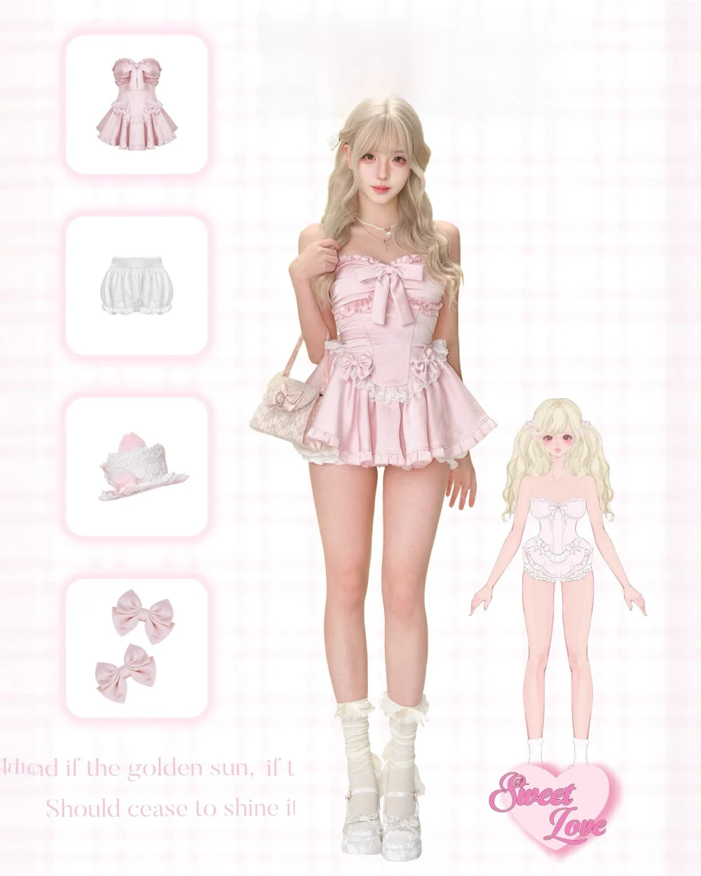 Bring your dreamy pastel fantasies to life with this sweet and structured pink set. Crafted with a smooth, satin-like finish and delicate lace trimming, this piece captures the essence of a soft girl look with high-quality construction.