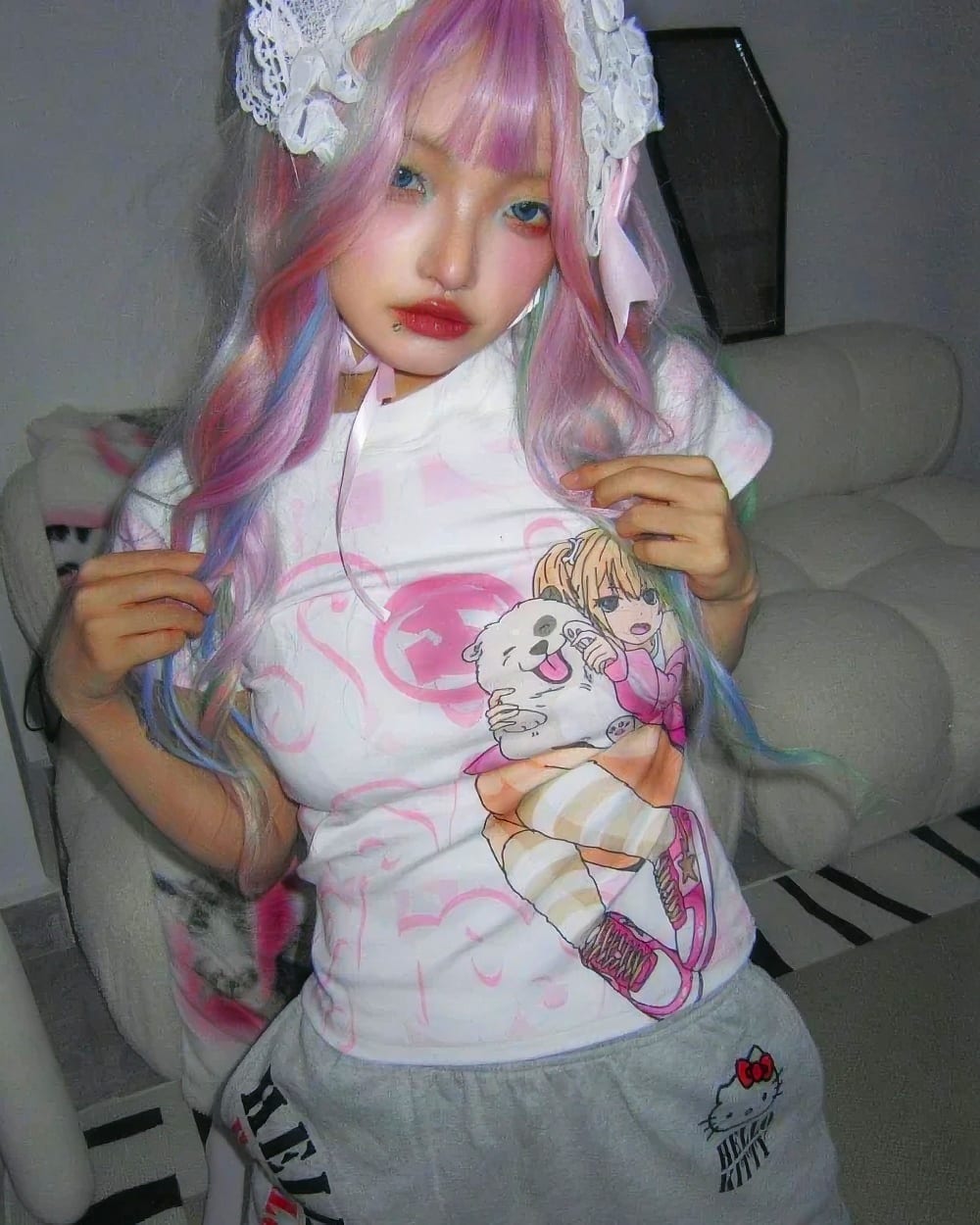 The Short Pink T-Shirt – Cutecore Aesthetic is a candy-sweet staple for every cutie’s wardrobe~ (。•ㅅ•。)♡💗🍥💫