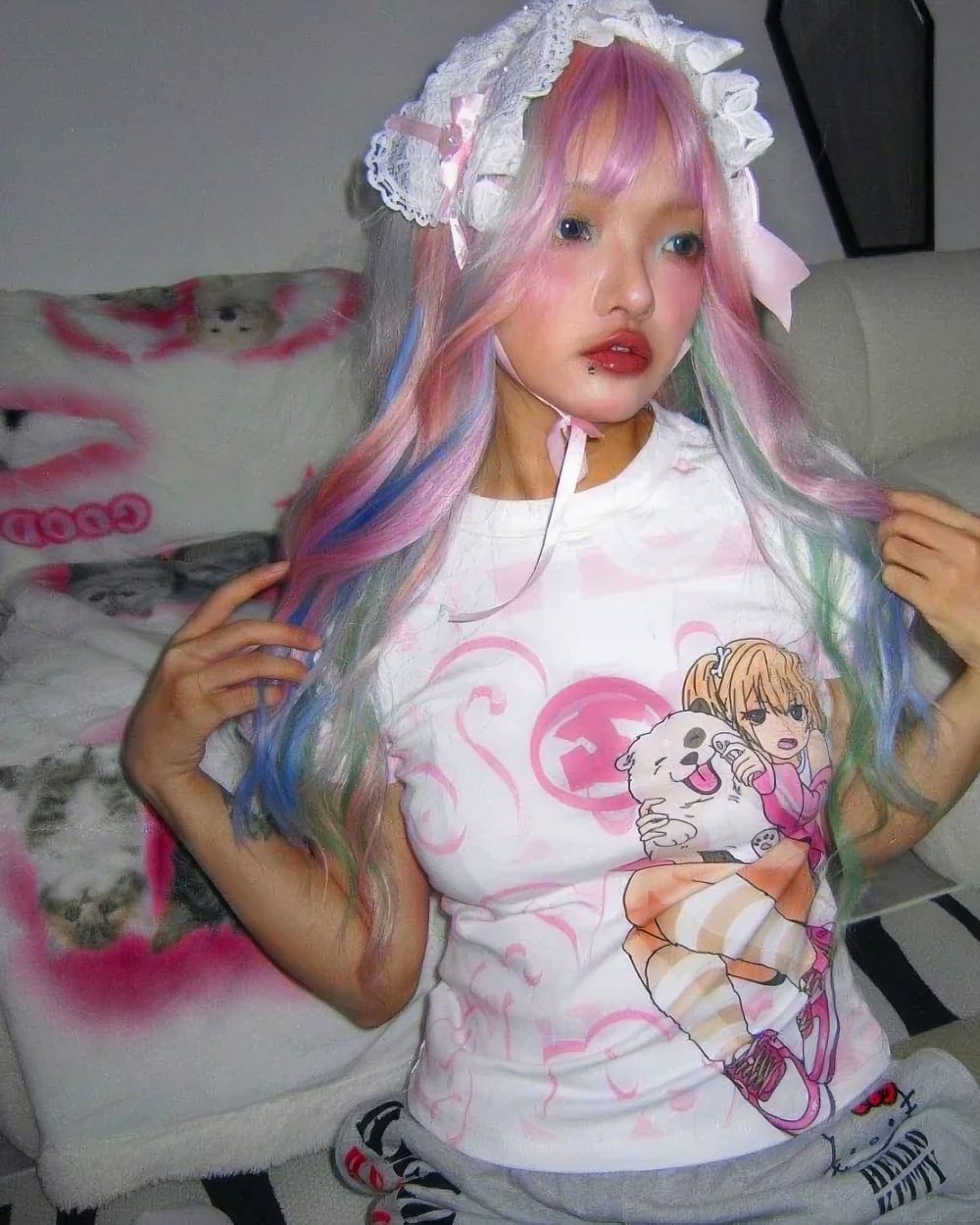 🎀 Short Pink T-Shirt – Cutecore Aesthetic 🍓🌈
