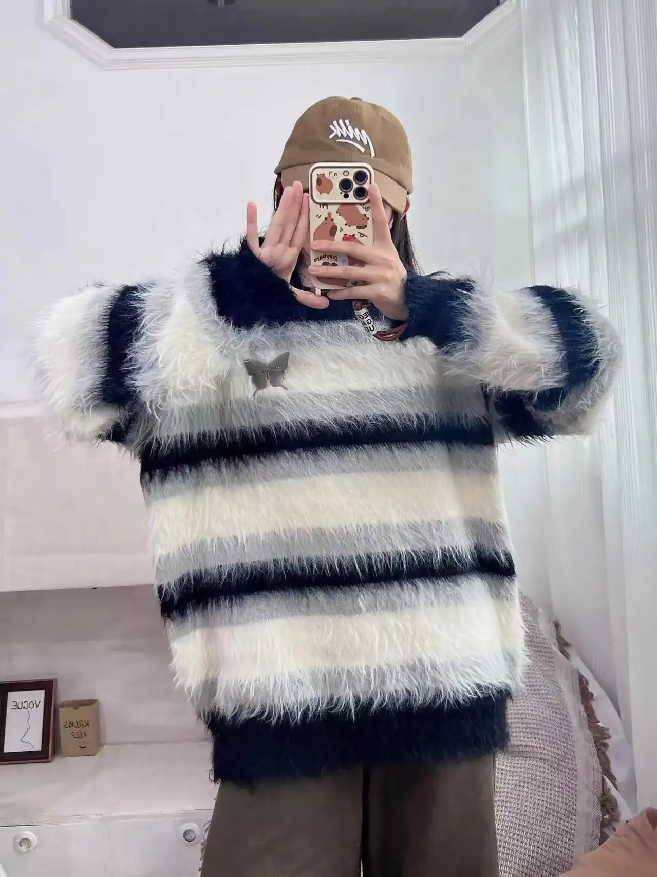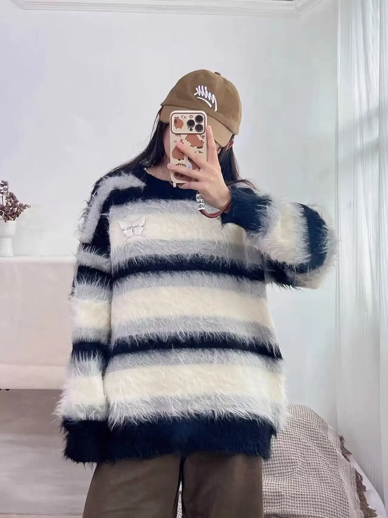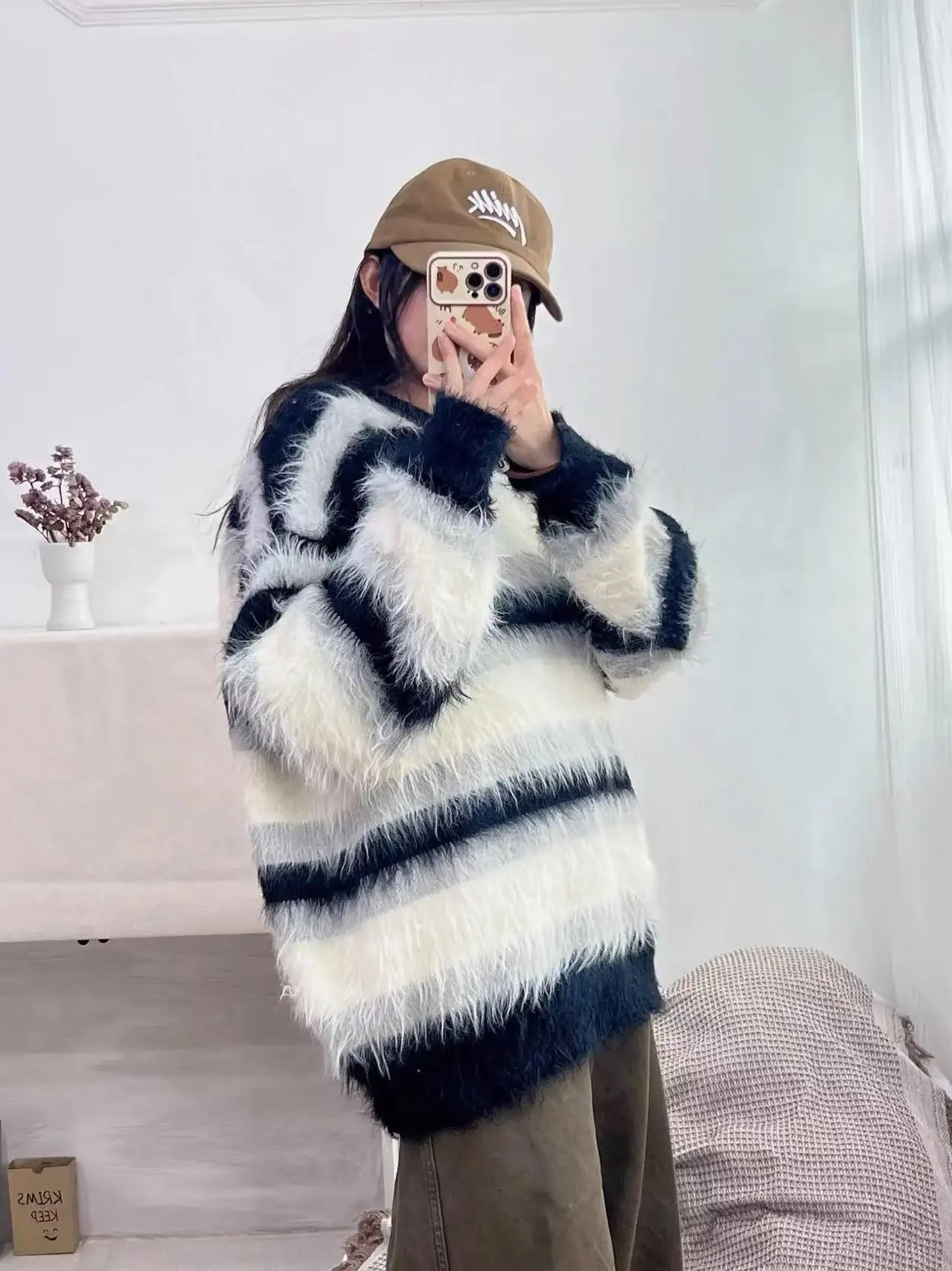 Striped Fluffy Sweater – Korean Aesthetic (´。- ᵕ – 。`) ♡