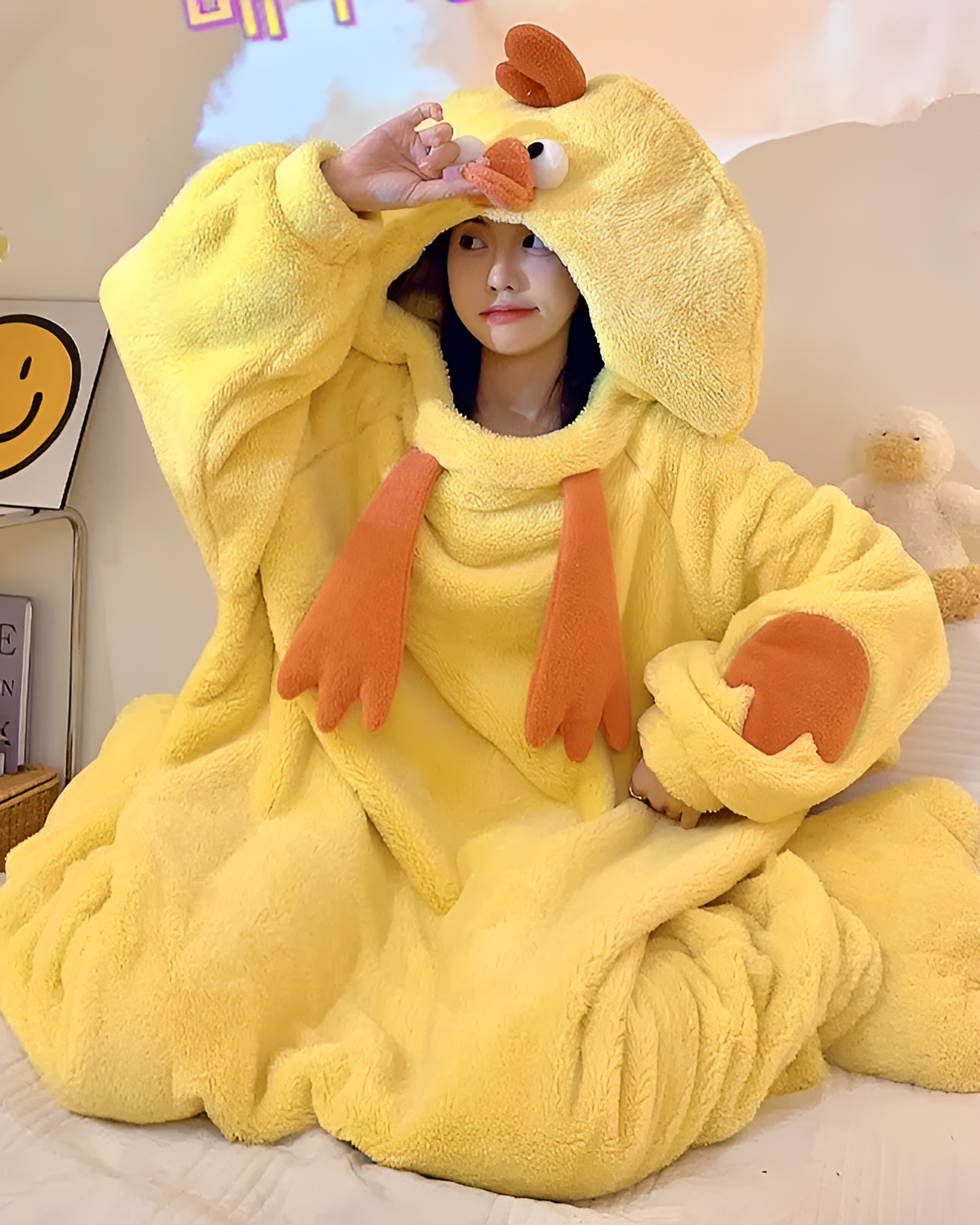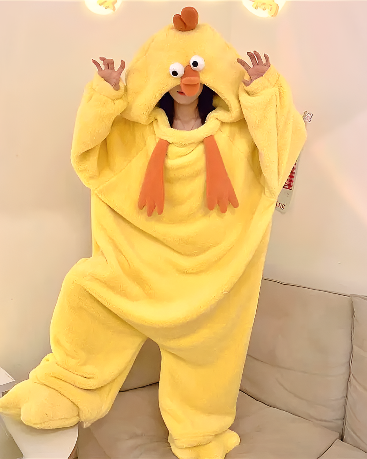 Wear The Chicken Kigurumi to signal you are unavailable for adulting today. It is the designated isolation uniform for recovering from burnout or hosting a lonely anime marathon.