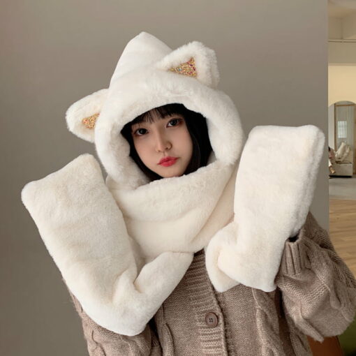 This multifunctional accessory is made of soft and luxurious cashmere, providing ultimate warmth and comfort during the chilly season. Featuring adorable bear ears, it adds a touch of cuteness to your winter wardrobe.
