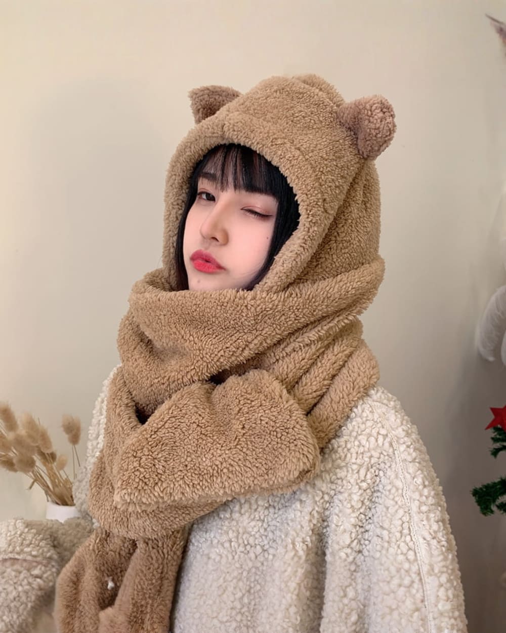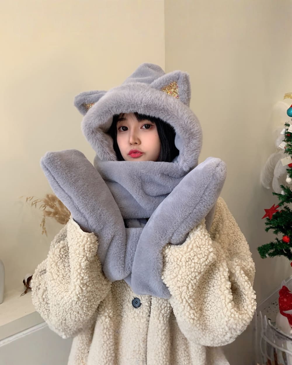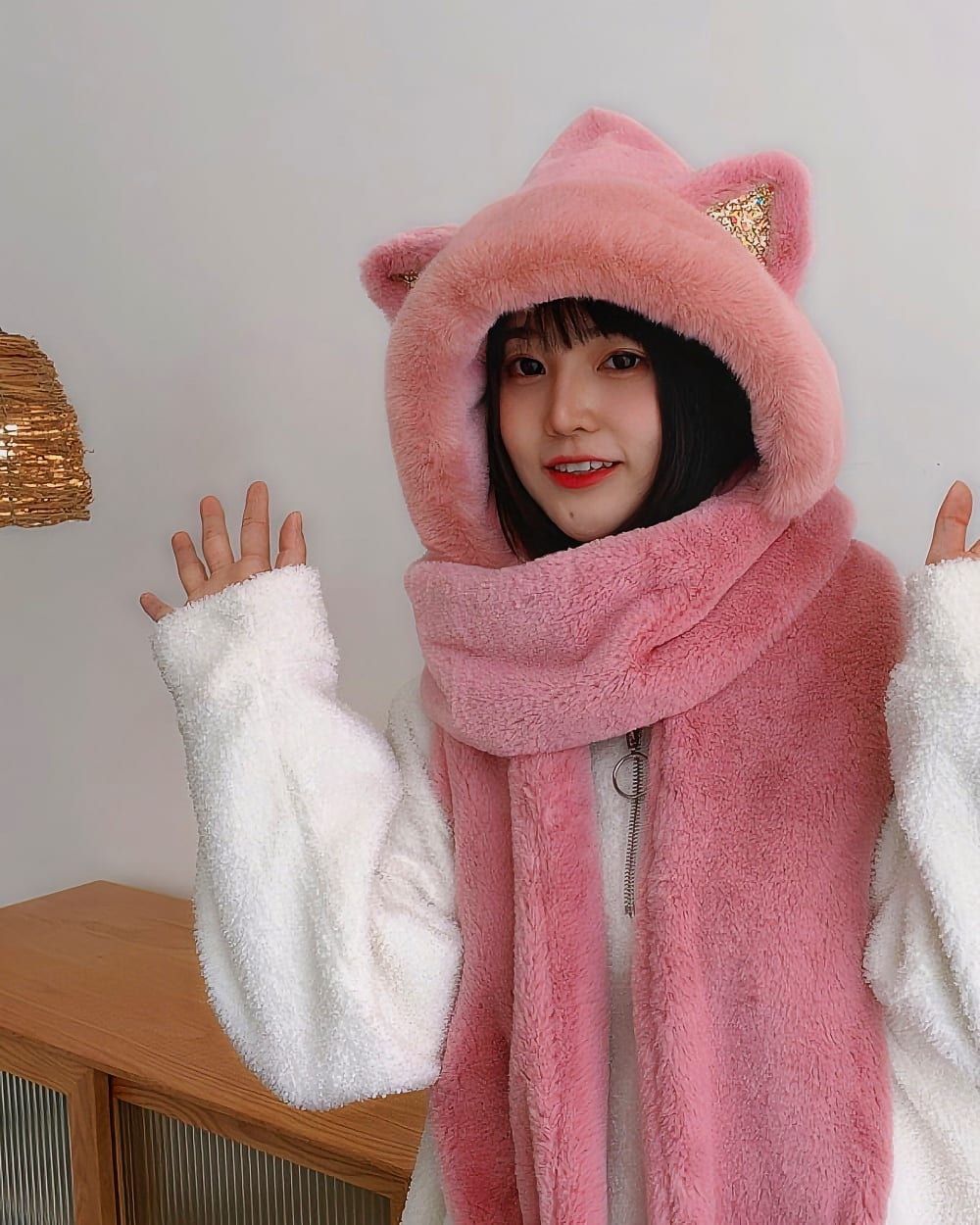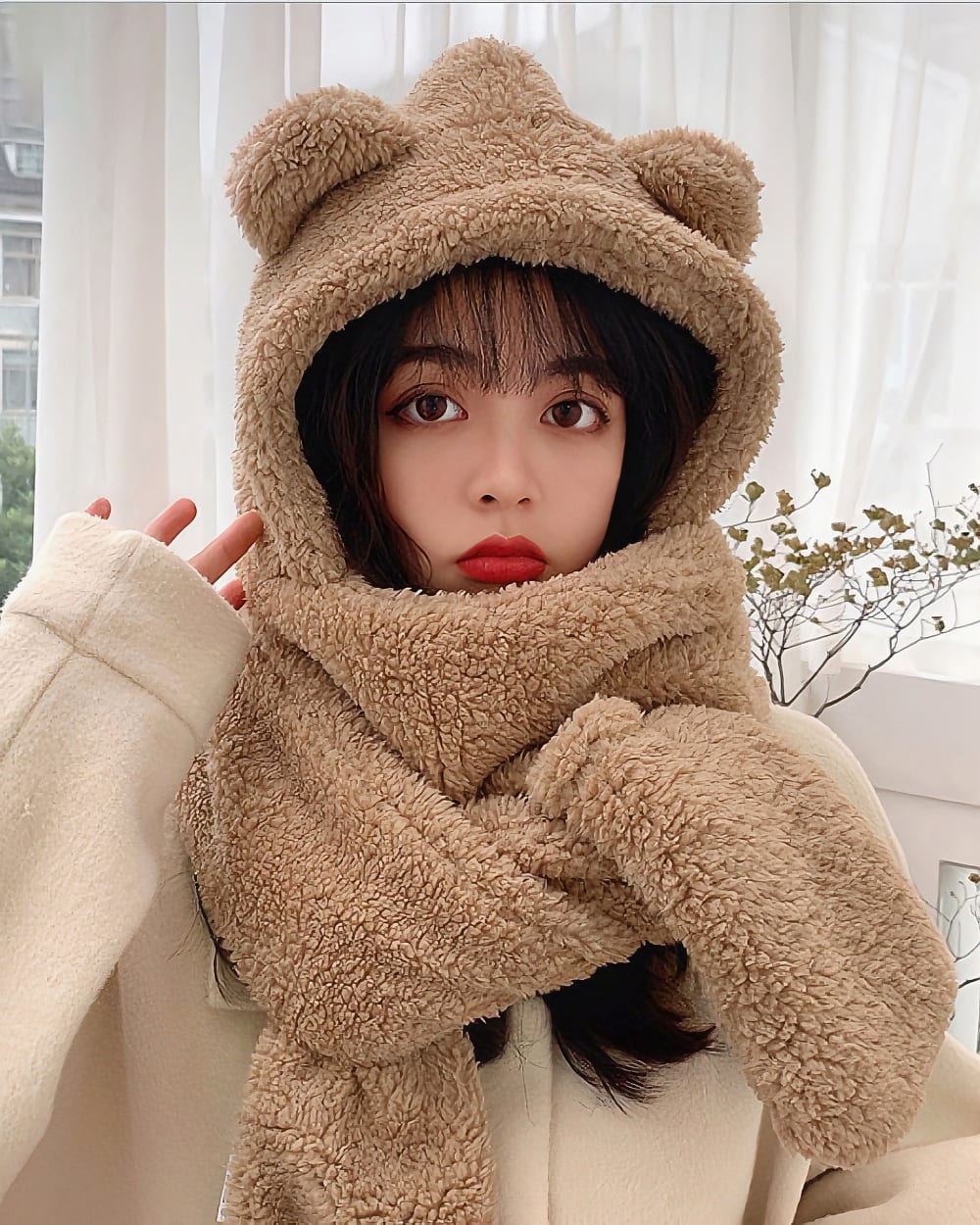 This multifunctional accessory is made of soft and luxurious cashmere, providing ultimate warmth and comfort during the chilly season. Featuring adorable bear ears, it adds a touch of cuteness to your winter wardrobe.