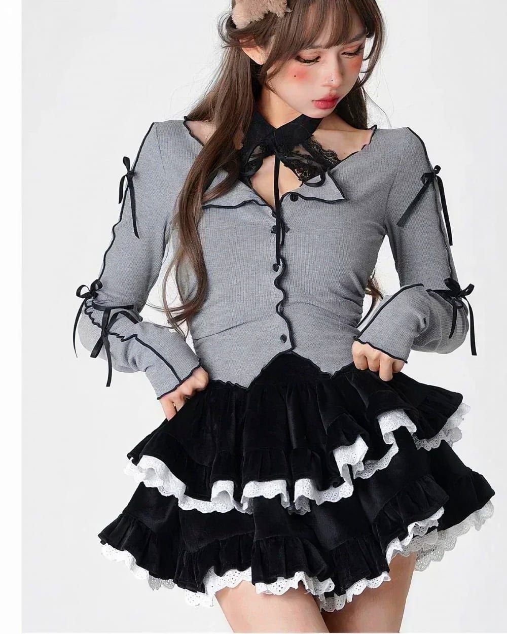 🎀 Add a cropped cardigan + frilly socks for soft girl energy
