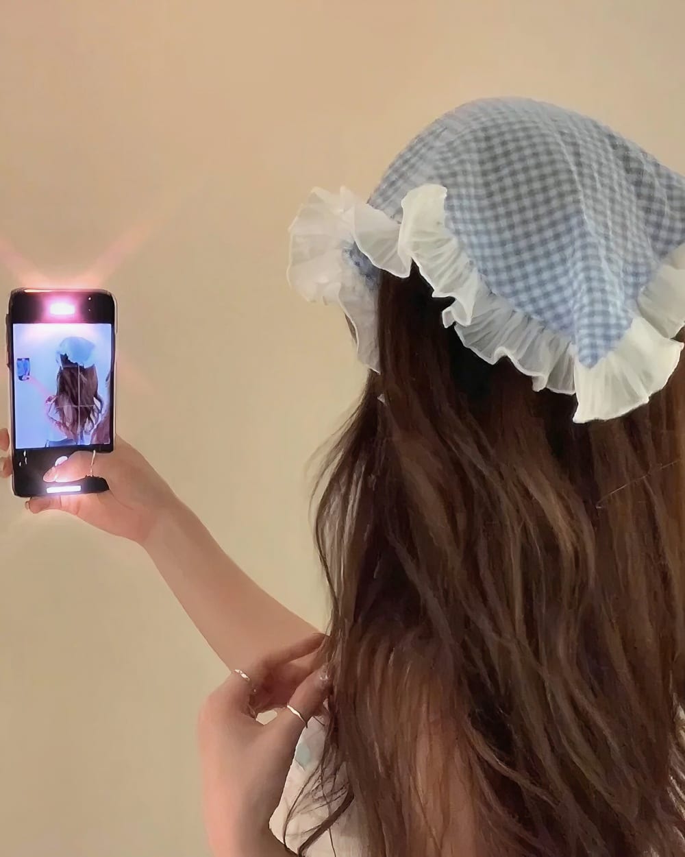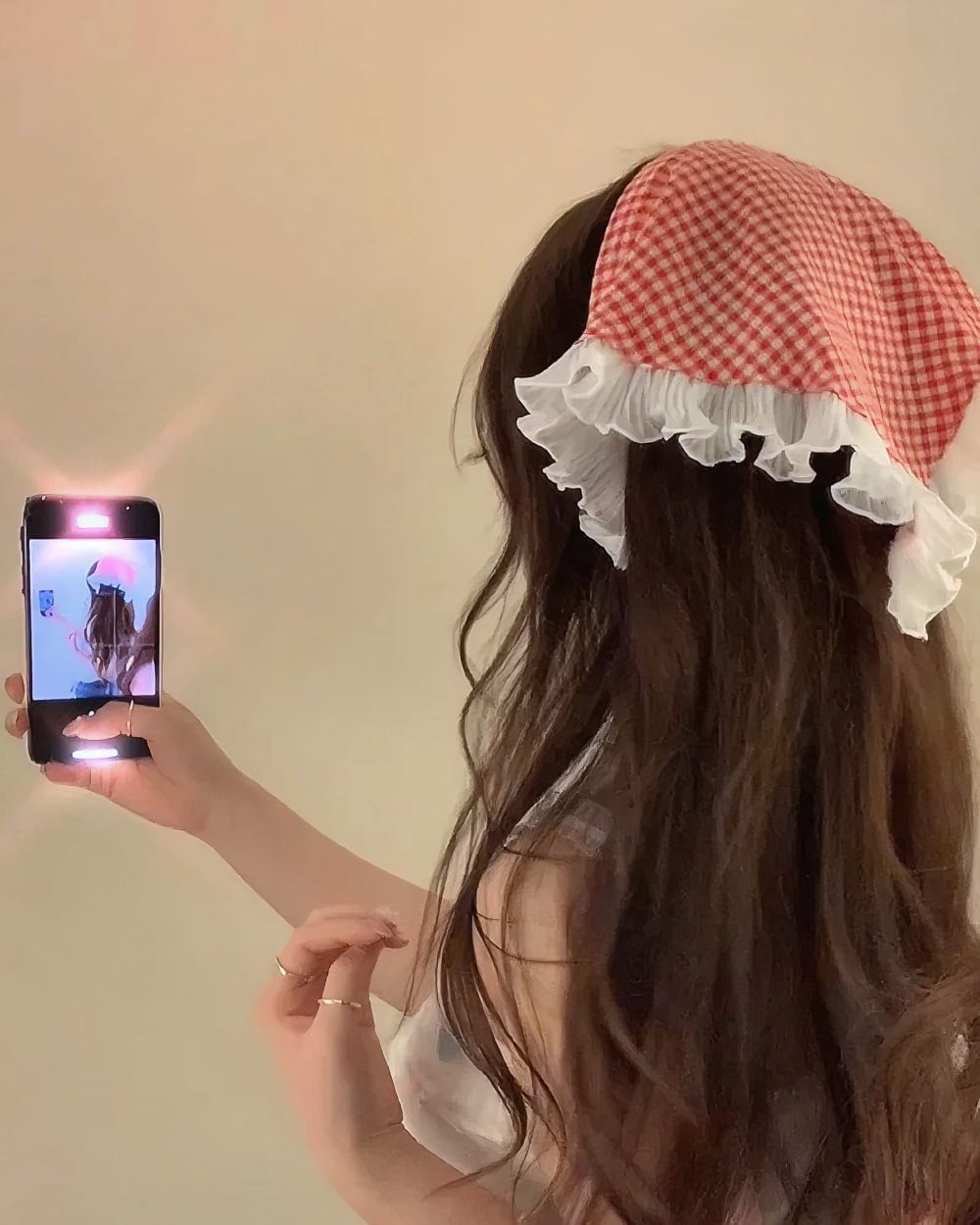 - Charming Gingham Print: Featuring a delicate gingham pattern, this headscarf channels pure countryside cuteness and timeless retro feels! 🏡🌻