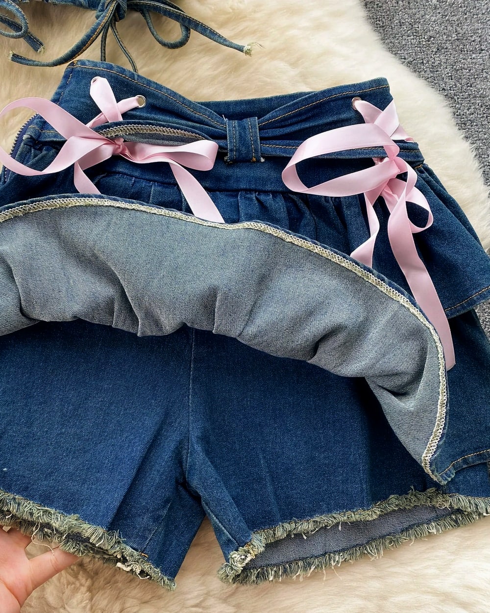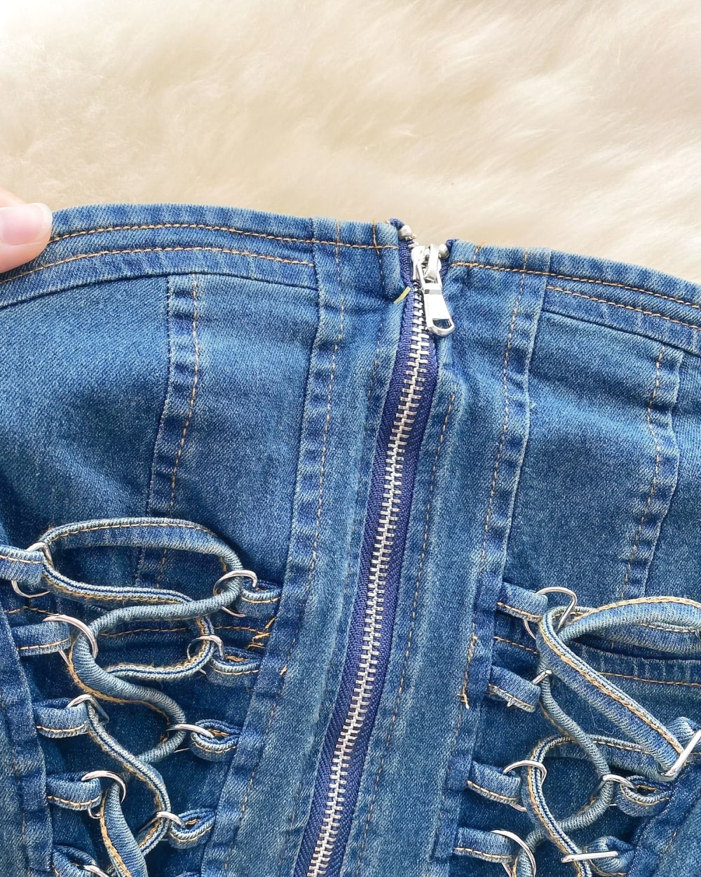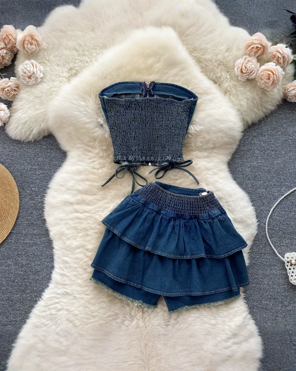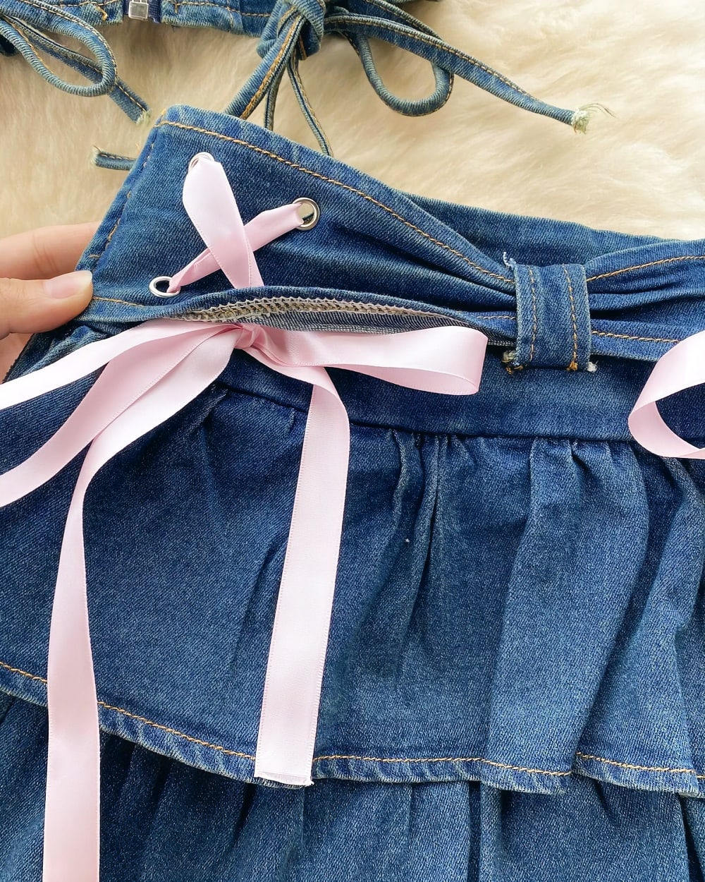 Slip into the Two-Piece Coquette Denim Set and live your best Y2K fantasy! ✨💙(ノ´ヮ`)ノ*: ・゚✧