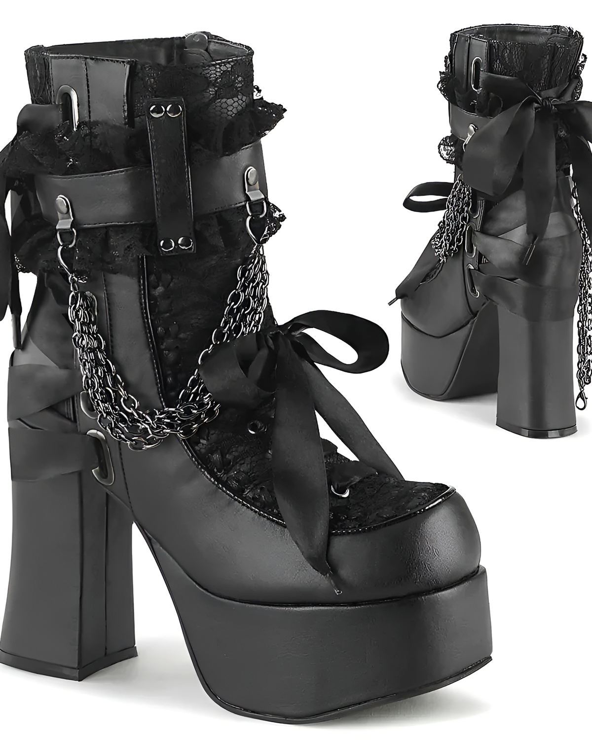 These Vampyra Chain-Ribbon Platform Boots feature sturdy vegan PU leather and reliable rubber outsoles. They’re handmade to survive your longest days without falling apart like your sleep schedule.