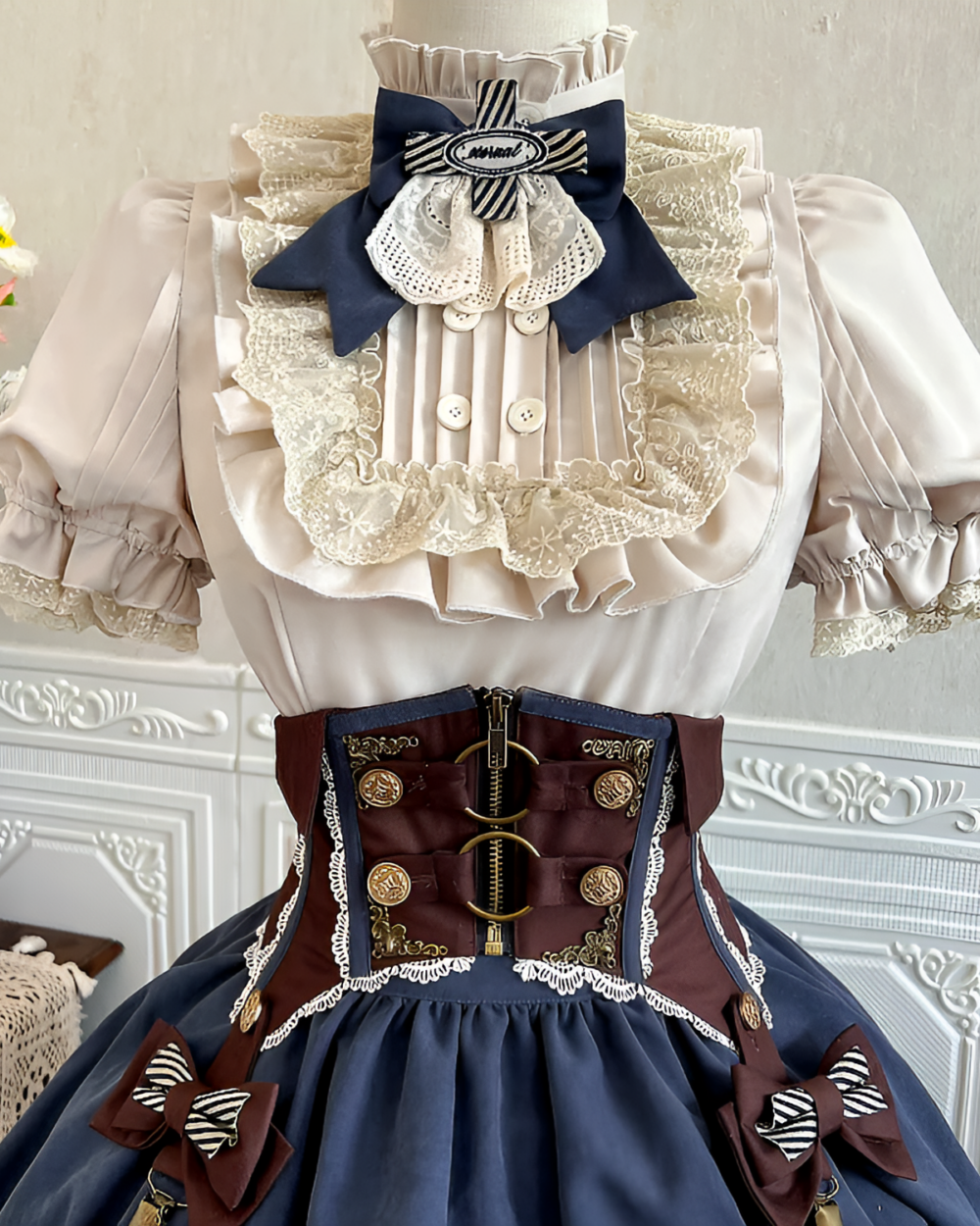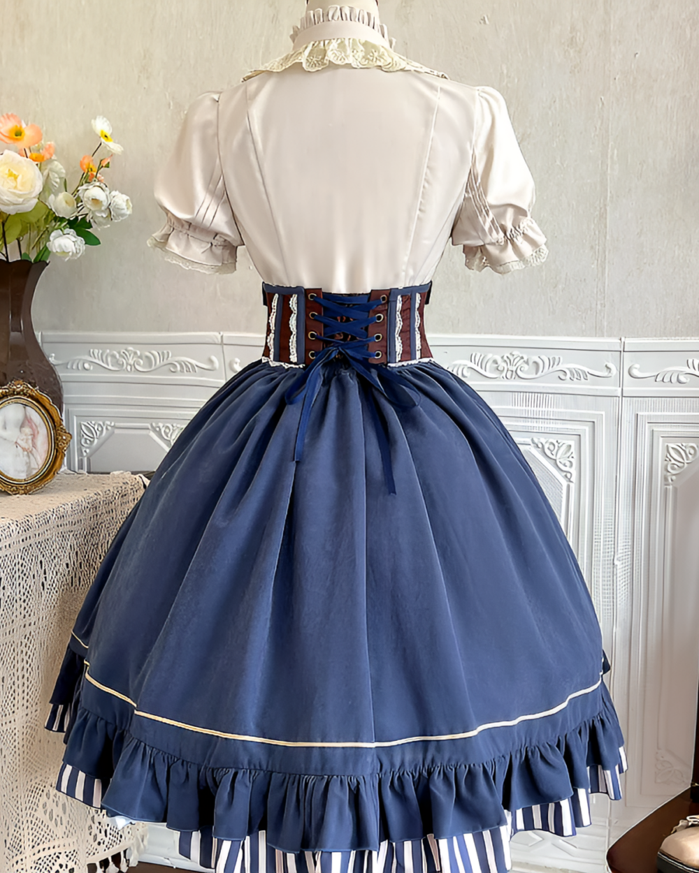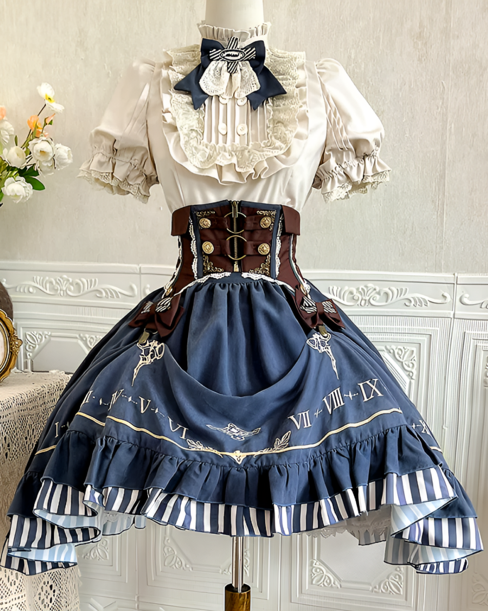 Crafted from durable polyester, this set includes a crisp blouse, skirt, and corset belt. It holds its shape better than your last relationship.