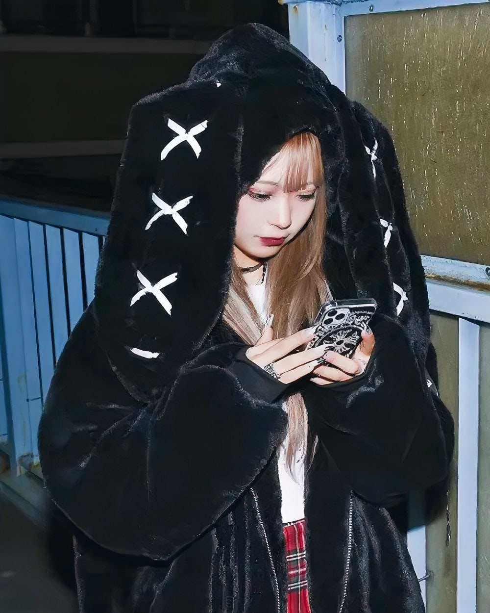 Stay cozy and super kawaii this winter with our Winter Coat Rabbit Ears, inspired by Harajuku fashion! ✨❄️ This oversized fluffy coat is your ultimate statement piece for chilly days, blending comfort with iconic Japanese street style. Featuring adorable bunny ear details on the hood (complete with cross-stitched eyes ✖️✖️) and ultra-soft material that feels like a warm hug, you’ll never want to take it off! 💜🐇